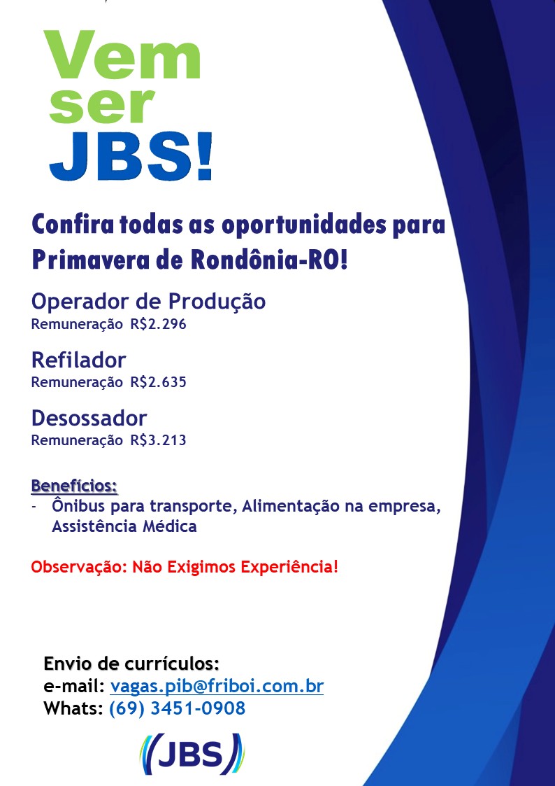 #VagasDeEmprego #PrimaveraDeRondônia #JBS #Oportunidade #Trabalho #EmpregoRO #VemSerJBS